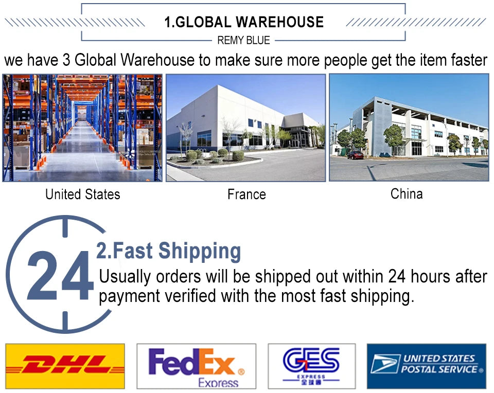 Delivery Time : 3-5 working days to US/ Canada ; 4-6 working days to European countries